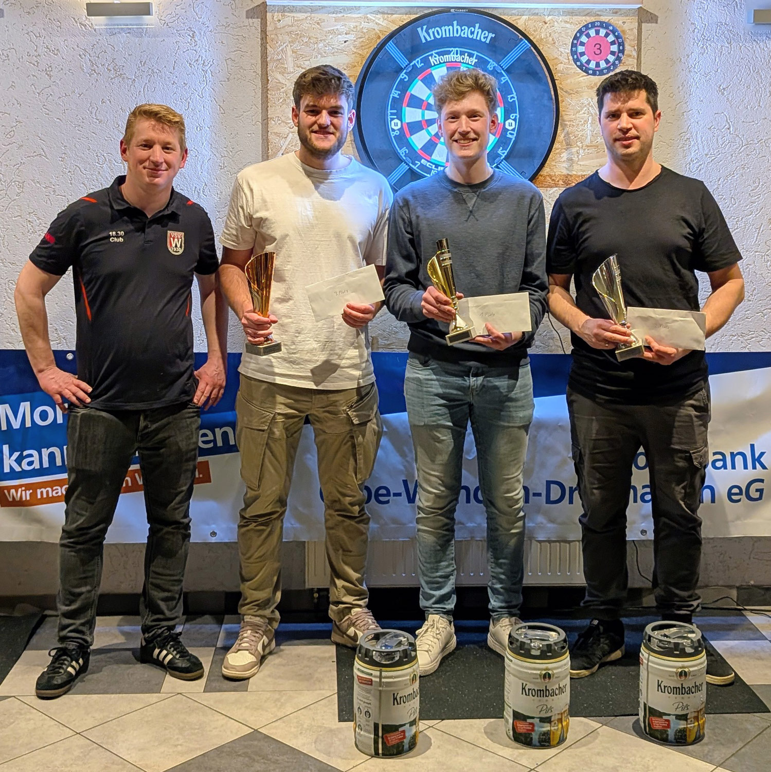 Der letzte Samstag im Januar im Vereinsheim war alles andere als ein ruhiger Winterabend. Beim „VSV & Freunde“-Turnier herrschte am Dart-Board absoluter Ausnahmezustand. Ganze 58 Teilnehmer duellierten sich in acht verschiedenen Gruppen, was allein in der Hauptrunde zu stolzen 182 Spielen führte. Sechs Stunden lang wurde konzentriert gezielt und geworfen, bevor es in der Finalrunde in weiteren 32 Duellen um alles ging.