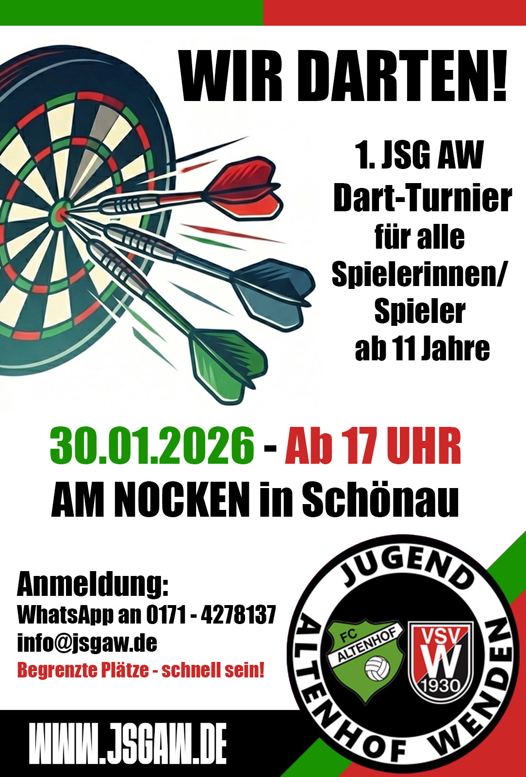 Am 30.01.2026 ist es so weit: Die JSG Altenhof/Wenden lädt zum 1. Dart-Turnier ein
