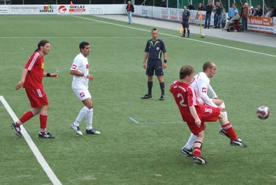 Noch vor der Halbzeit wurde die Führung von Rabi al Saleh aus der 25. Minute ausgeglichen. Rabi hatte unsere Mannschaft per Foulelfmeter - Martin Klein wurde umgelegt - in Führung gebracht.