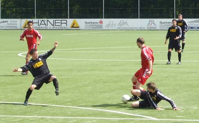 Nach dem Wiederanpfiff ging es dann wieder ganz schnell: Tim Weber, der auch heute wieder keinen einzigen Ball verloren gab und niemals zu halten war, brachte den Ball irgendwie von der Grundlinie in die Mitte zu Christian Link. Christian war einen Schritt schneller als zwei Rothemühler und Rabi al Saleh musste nur noch vollenden. 2:0!