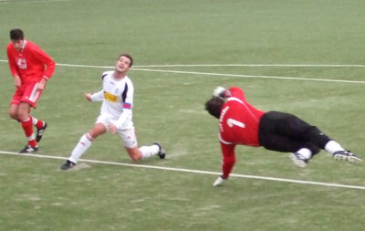 Olli Rempel prüfte den Keeper nach 15 Minuten mit einem klasse geschossenen Freistoß, der noch soeben aus dem Winkel geholt werden konnte.
