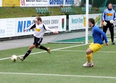 Matthias Lönze, heute dreifacher Torschütze, traf nach nur sieben Minuten per direkt verwandeltem Freistoß aus 18 Metern unhaltbar zum 1:0.