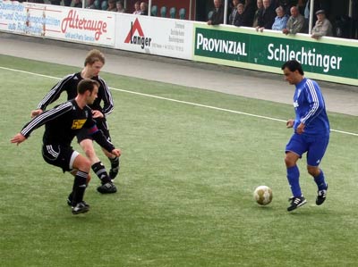 Kurz vor der Halbzeit wurde dann noch zweimal gejubelt. Bogdan Spasic hob den Ball in der 38. Minute wunderbar über den Torwart und es stand 3:0, nur zwei Minuten später traf Roland Rempel per Kopf zum 4:0 Halbzeitstand.