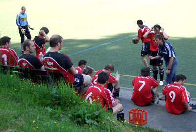 Den Rest der ersten Halbzeit tat sich nicht mehr viel, unsere Mannschaft bemühte sich, kam aber zu keinem Treffer mehr. Die Siegener zeigten auch kein schlechtes Spiel, nach vorne kam allerdings nichts zu stande.