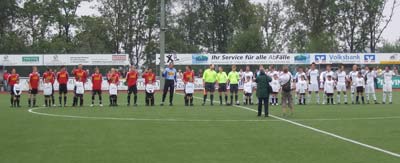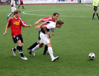 Die ersten 15 Minuten spielten beide Mannschaften äußerst vorsichtig und verhalten. Die erste Möglichkeit im Spiel hatte Olli Rempel per Kopf nach einer Ecke (7.), im Gegenzug musste Andi Klein nach einem Henrichs Schuss aus 15 Metern kräftig zupacken.