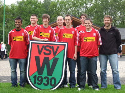 v.l.n.r.: Marcel Walker, Alexander Ochs, Tobias Keller, Marco Grisse, Kevin Brockmeyer, Sebastian Henne, Kevin Novak, Trainer Uwe Neuser (Björn Horn fehlt)