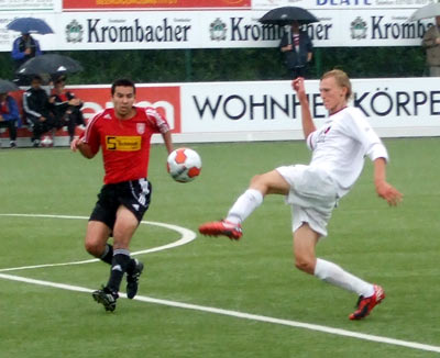 Gerade im ersten Durchgang waren die Siegerländer überlegen. Knackpunkt war sicherlich die 13. Minute, als der Schiedsrichter völlig zurecht nach einem Foul auf den Punkt zeigte: Elfmeter.
