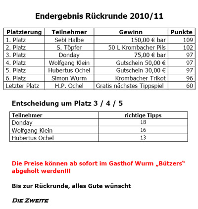 Ergebnisse Tippspiel 2010/11 Rückrunde