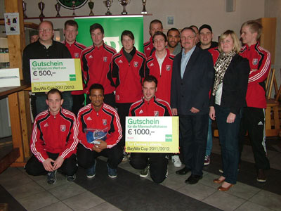 Vergangenes Jahr im April fuhr Oliver Rempel erst den Monats- und dann im Sommer sogar den Jahressieg ein. Jetzt ist sein Mitspieler Marcel Walker bereits der zweite Wendener, der einen Abstimmungserfolg für die Sauerländer verbuchen konnte. „Ich freue mich wirklich sehr und danke für die zahlreiche Unterstützung bei der Internetabstimmung“, sagte der 29-Jährige, als er einen Pokal, ein Trainings-Top sowie ein Apple iPod shuffle entgegennahm. Seinem Team bescherte er zusätzlich 1.000 Euro für die Mannschaftskasse, außerdem darf der Verein mit einem 500-Euro-Gutschein in den Filialen der BayWa AG einkaufen gehen.