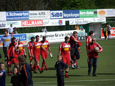 In den ersten 15 Minuten hatte unsere Mannschaft in Person von Olli, Timo und Andre drei gute Möglichkeiten. Auch in der Folgezeit spielte man nach vorne, zwingende Chancen ergaben sich leider nicht. Olli verfehlte nach einem Freistoß per Kopf nur knapp (32.), Timo wartete am 16er zu lange und am Ende war ein Bein dazwischen (40.).