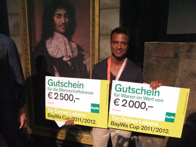 Marcel bekam einen Gutschein der Jochen Schweizer GmbH im Gesamtwert von 400,00 Euro und die Mannschaft erhielt einen Barzuschuss im Gesamtwert von 2.500,00 Euro.