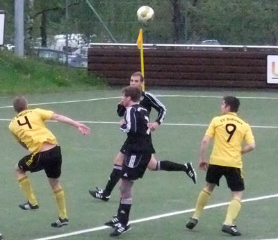 Marco Bäumer traf in der 68. Minute nach einem Eckball von Jens Solbach mit anschließender Co - Produktion von Ju Eckhardt und Timo Halbe irgendwie im Sitzen oder im Liegen zum viel umjubelten und verdienten 3:3 Ausgleich!