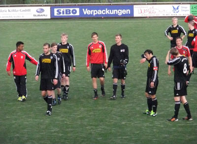 Den verbliebenen zehn Spielern war es aber egal und es wurde einen Gang hochgeschaltet. Julian Eckhardt verpasste nach einer Flanke von Alexander Moszeik per Kopf nur knapp den Kasten (63.).