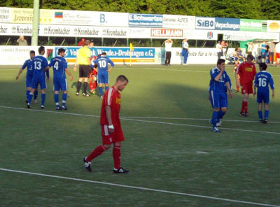 Unkonzentrierte Abspiele und Pech im Abschluß verhinderten den längst fälligen Ausgleich. Michel Alfes traf in der 86. die Latte und vier Minuten später machte es Timo Halbe besser, als er einen Freistoß aus 20 m in die lange Ecke zirkelte.