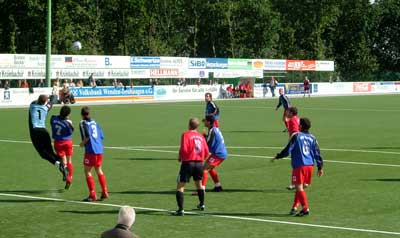 vier Minuten später fiel dann das 2:0 für die Attendorner. Thomas Breidebach knallte den Ball aus zwanzig Metern an die Latte, Mehmet Er mußte anschließend völlig freistehend nur noch das Tor treffen.