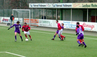 In der 36. Minute war es wieder Thomas Hütte der hart aufs Tor schoss. Der Torwart ließ auch den Ball wieder abprallen, so daß Hütte im Nachschuss erfolgreich war: 2:0!