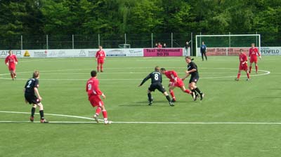 Nur eine Minute später küsste ein Hütte-Freistoß fast die Werdohler Latte, nach 15 Minuten scheiterte Miki Frtunic mit einem Seitfallzieher knapp.
