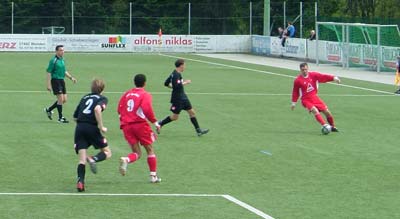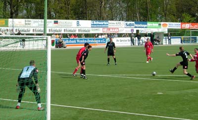 Kurz vor der Halbzeit strich ein Hütte-Freistoß am Tor vorbei, mit dem verdienten Vorsprung ging es dann in die Pause.