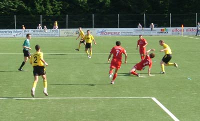 Nach dem Wiederanpfiff wurde es grausam, Markus Niklas erzielte in den nächsten sieben Minuten zwei wie Uwe Neuser nachher treffend feststellte "billige Tore" und schoss seinen SVO mit 3:2 in Führung.