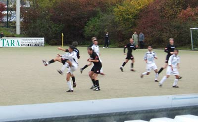 Kurz danach standen sich Miki Frtunic und Andre Hüsch beim Kopfball gegenseitig im Weg.