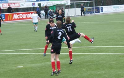 In der Folgezeit war unsere Mannschaft am Drücker. In der 13. Minute wurde ein Aslan-Schuss glänzend pariert, fünf Minuten später scheiterte Christoph Schönauer aus 18 Metern. Wiederum nur fünf Minuten später klappte es besser, Celil Aydin spielte Christoph Schönauer an und dieser konnte ohne Mühe aus kurzer Distanz ausgleichen. In der 24. Minute verpasste Aslan die Führung per Kopf nur knapp, zehn Minuten später rappelte es allerdings auf der Gegenseite und es stand 1:2.