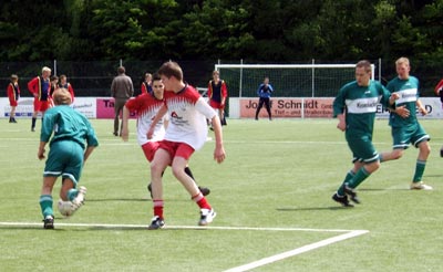 Letztendlich hatten die Sänger einen entscheidenden Vorteil und der machte den Unterschied: Matthias Quast schraubte sich in den entscheidenden Spielphasen 2x in den hellblauen Himmel am Schönauer Nocken und nickte unhaltbar ein. Mit diesen beiden Kopfballtorpedos war er maßgeblich am verdienten Erfolg seiner Mannschaft beteiligt.