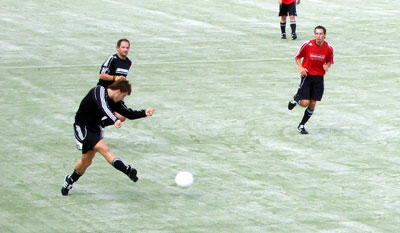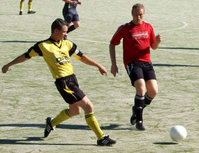 Martin Klein auf VSV-Seite hatte nach einem Zuspiel von Eduard Landel nach 5 Minuten die erste Chance per Kopf.