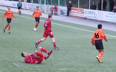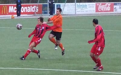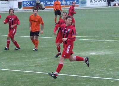 Zehn Minuten später hämmerte Lönze aus 20 Metern auf den Kasten, leider genau in die Arme des Keepers.